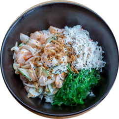 Steamed shrimp, sweet onion, scallion, cucumber, masago, wasabi mayo