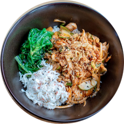 Steamed all natural chicken breast, sweet onion, scallion, cucumber, sweet & chili gochujang sauce